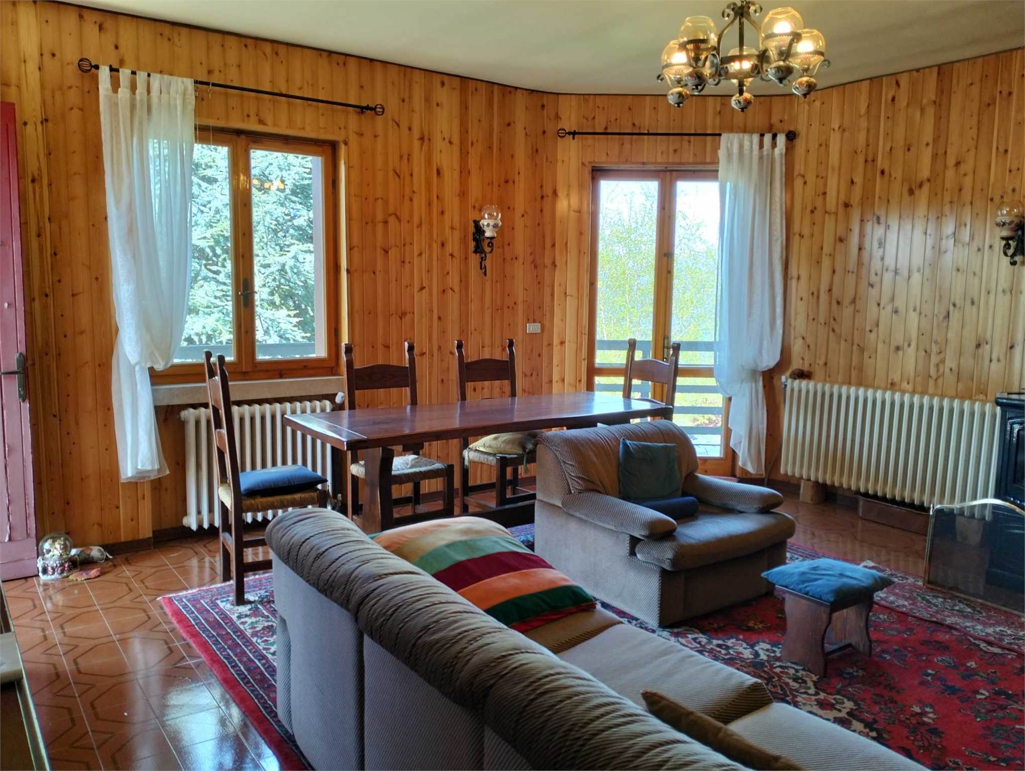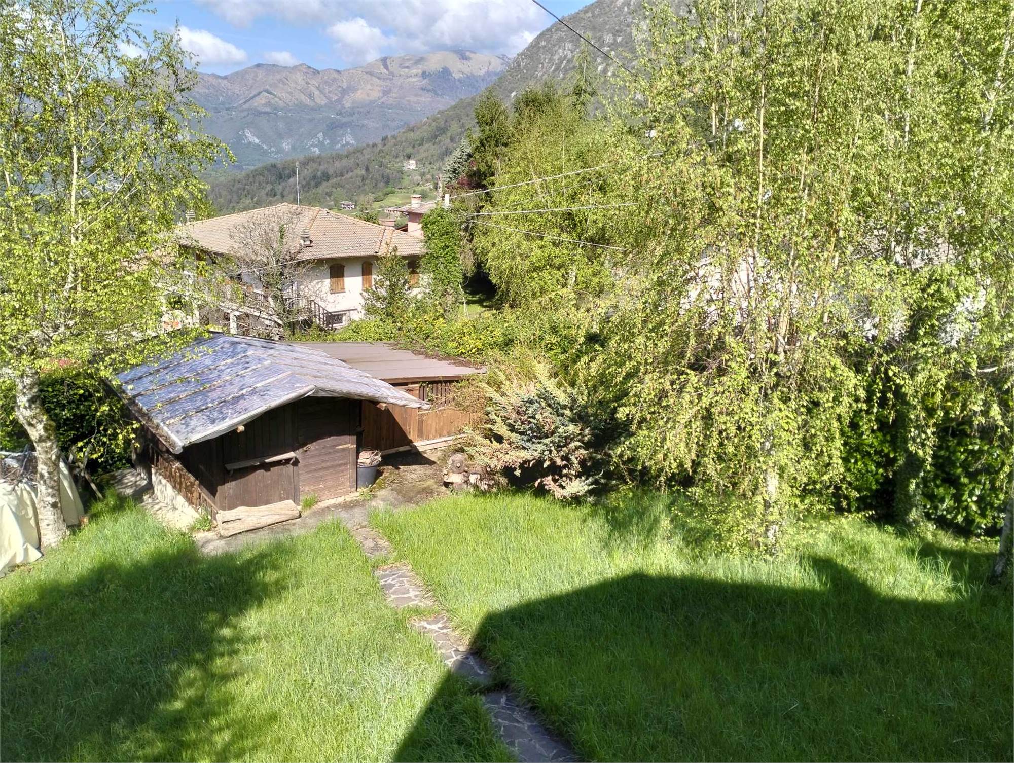 Ingresso al piano terra dal giardino di proprietà esclusiva, soggiorno ampio con caminetto, angolo cottura a vista, due camere, un bagno. Il primo piano è collegato al piano terra da una scala interna MA GODE ANCHE DI UN INGRESSO INDIPENDENTE, sono quindi presenti un altro soggiorno, la cucina abitabile, due camere ed un secondo bagno. E' presente una bella mansarda che ospita una camera matrimoniale. La casa è circondata dal verde, al primo piano c'è un bel balcone soleggiato e ventilato. Visite senza impegno