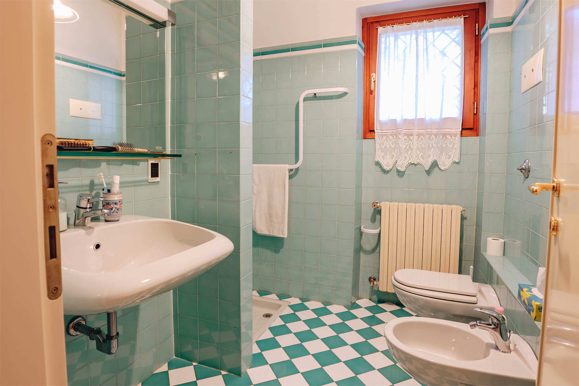 Al piano terra, con ingresso dal giardino, UNA BELLA E SPAZIOSA AUTORIMESSA, zona lavanderia (finestrata e luminosa) molto comoda.